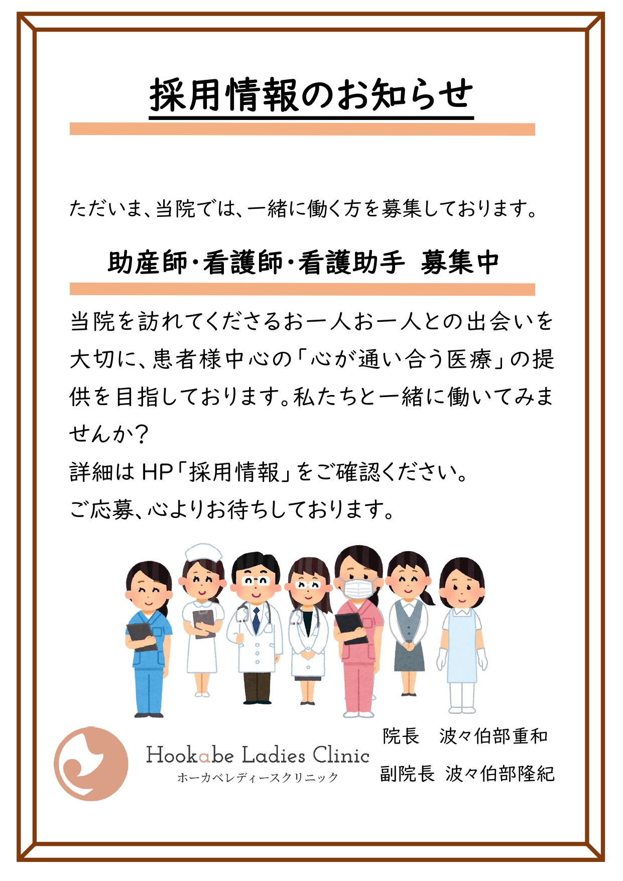INFORMATION お知らせ About Clinic クリニックについて News お知らせ・情報 お知らせ マザークラス おめでたエピソード 採用情報 For First Visitor 初めて受診される方へ About Obstetrics 産科について About Gynecology 婦人科について Reserve 診療予約 お知らせ 2026.01.09 📢助産師・看護師・看護助手 募集中😊